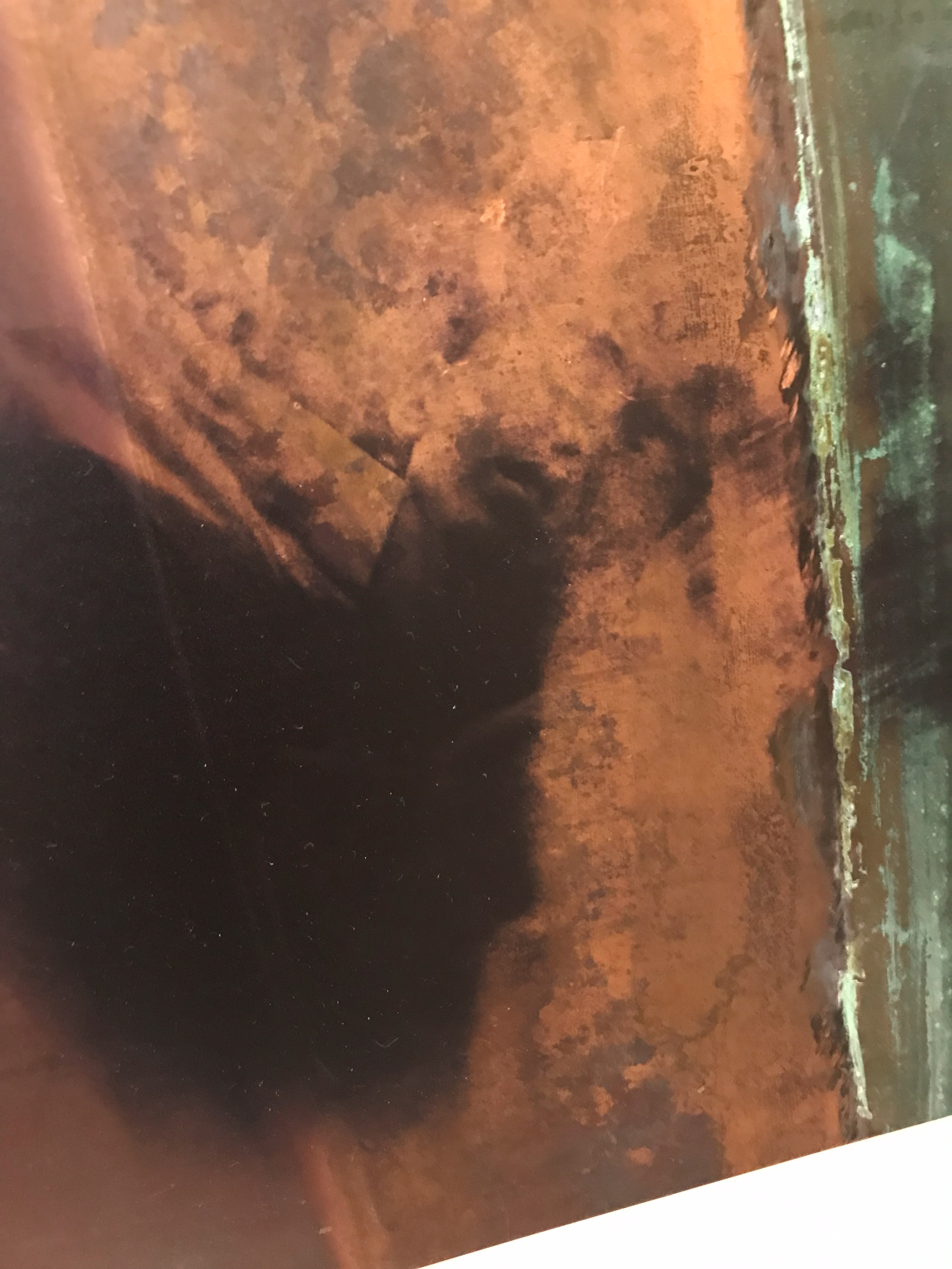 incredible oxidized copper plates and sprawling collages on baryta paper.