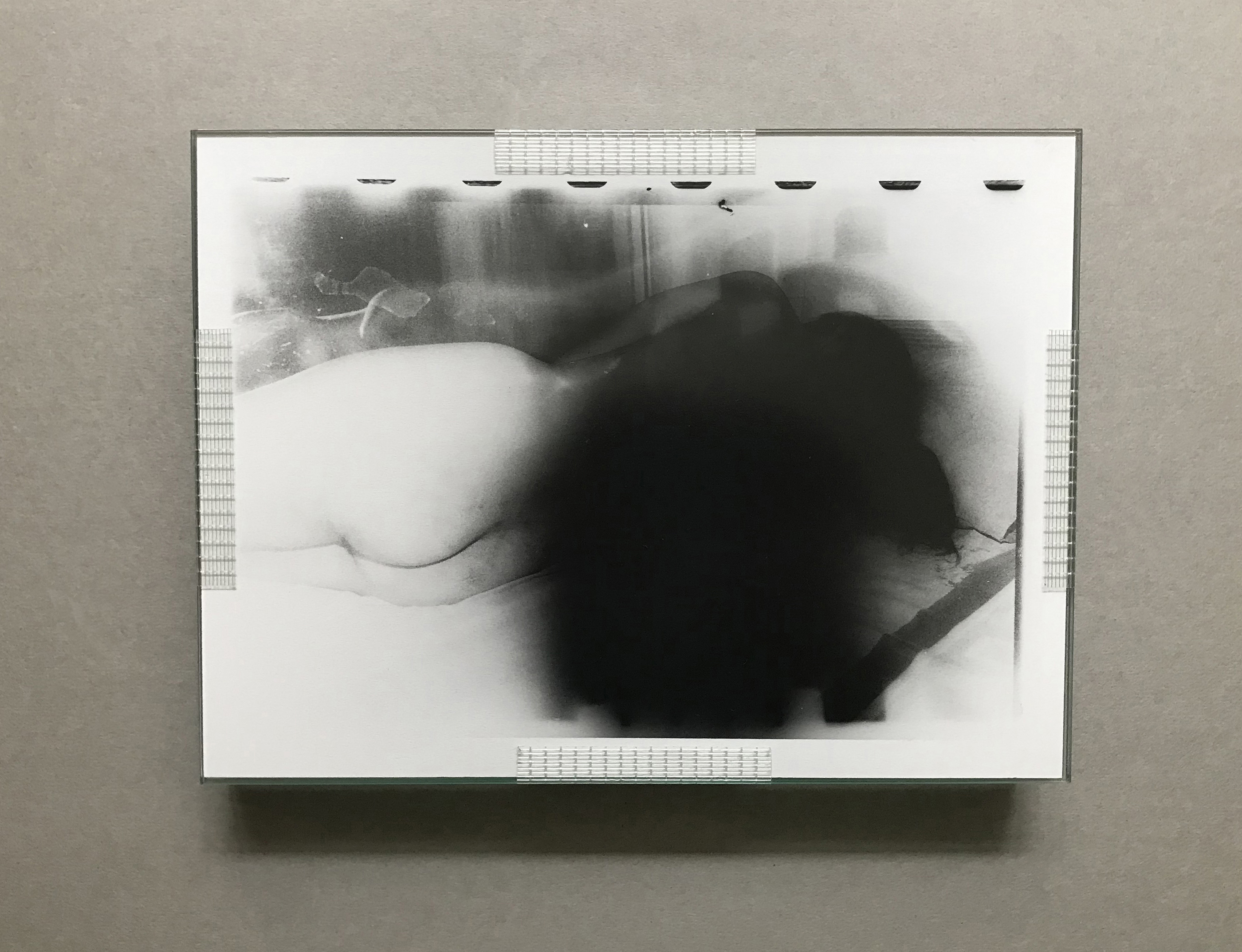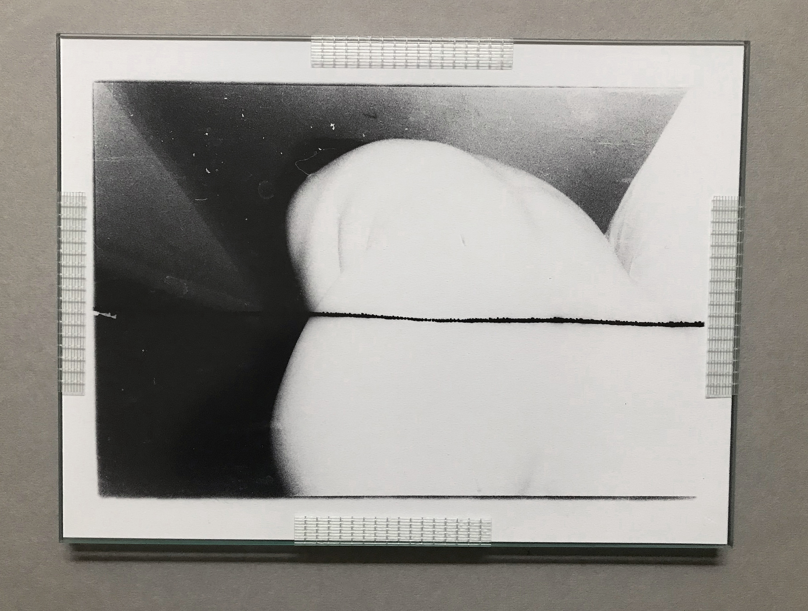 The fragility & vulnerability of glass contrasts sharply with the violence & raw starkness inherent to the 'Meat' project. When smashed, like the damaged photography itself, it also has bloody connotations. When intact, like this, it appears like ice, translucent skin, a magnifier - in a process of deep-freeze and stillness. The links to 'glass delusion' - the psychiatric disorder whereby the sufferer believed one's body to be made of glass - are also obvious in this context. Meat is the corpus. Encased & welded in stainless steel - cold like armour - or as in a blade, sharp and lethal.